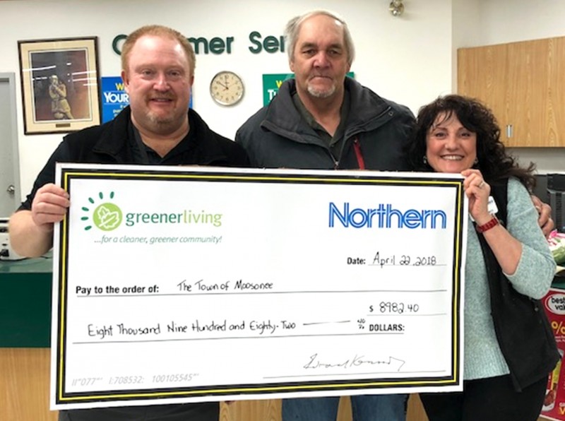 (Photo: From left: Norman Huffman, Store Manager of the Moosonee Northern Store; Wayne Taipale, Mayor of Moosonee; and Donna Huffman, Produce Manager.)