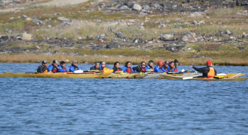 (Photo: Students of The Qajaq Program in Chesterfield Inlet take in valuable qajaqing lessons from their KSEC instructor)
