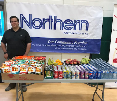 (Pictured: Northern store manager Ian Wray offering a variety of snacks at the community’s Indian Horse Screening event)