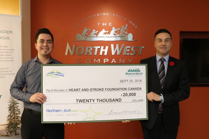 Photo: Left to Right: Andrew Thunder, Community Support and Communications Specialist, The North West Company and Dale Oughton, Director of Development, Heart & Stroke Foundation